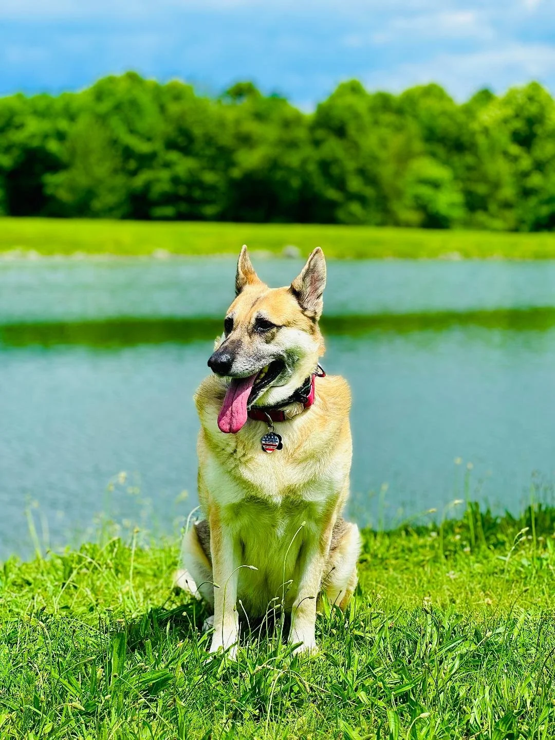 In middle of all of our heat, we had one cool day so Mommy took me on a long walk near a pond! It was good to get out and it was a beautiful day!